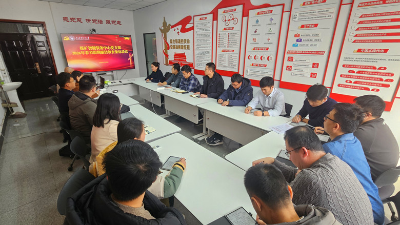 党支部书记耿毅德围绕2026年度党建工作作专项部署,强调要进一步聚焦宣传思想工作“举旗帜、聚民心、育新人、兴文化、展形象”使命任务,持续深化“红擎智矿”党建品牌建设,将党建工作做到广大教职工心坎里,推动党建工作与科研攻坚、人才培养深度融合,以高品质党建引领高质量科研成果产出。